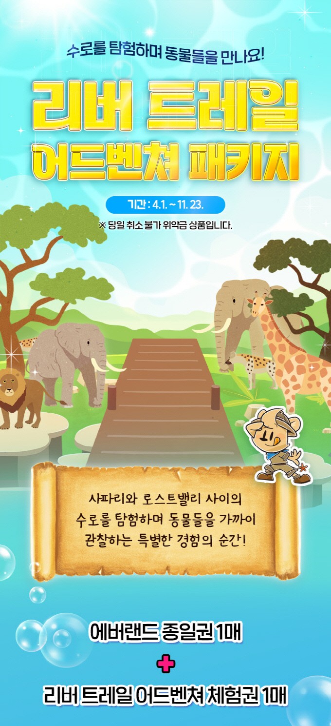 2024년 새롭게 오픈한 에버랜드 리버트레일 어드벤처! 물 위 도보 사파리부터 사자, 기린과의 초근접 체험까지, 로스트밸리와 비교해서 뭐가 다른지 궁금하셨죠? 지금 완벽하게 정리해 드릴게요.